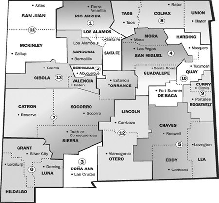 The following map – credit NM Bar.org – shows the NM Judicial Districts.
